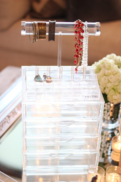 I also had the pleasure of viewing the latest products from Boxy Girl® this week and they are now live on the site. I am so in love with the new options for your Boxy Girl®. Hannah and her team have spent over a year developing the highest quality items that take your Boxy Girl® to another level. The newest items expand the Boxy Girl® making organizing your vanity a beautiful piece of art. The new items fit in or on top of the Boxy and organize your jewelry and makeup in a more stylish and efficient way.